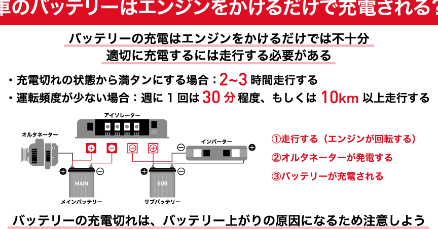 バッテリー上がりのためのエンジン掛ける時間と頻度