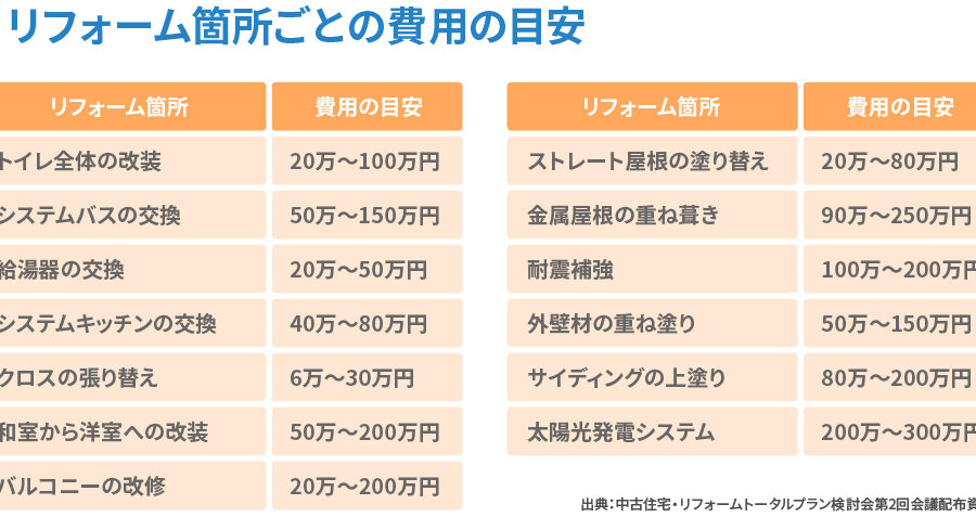 リフォームにかける費用はどのくらい?具体的な目安