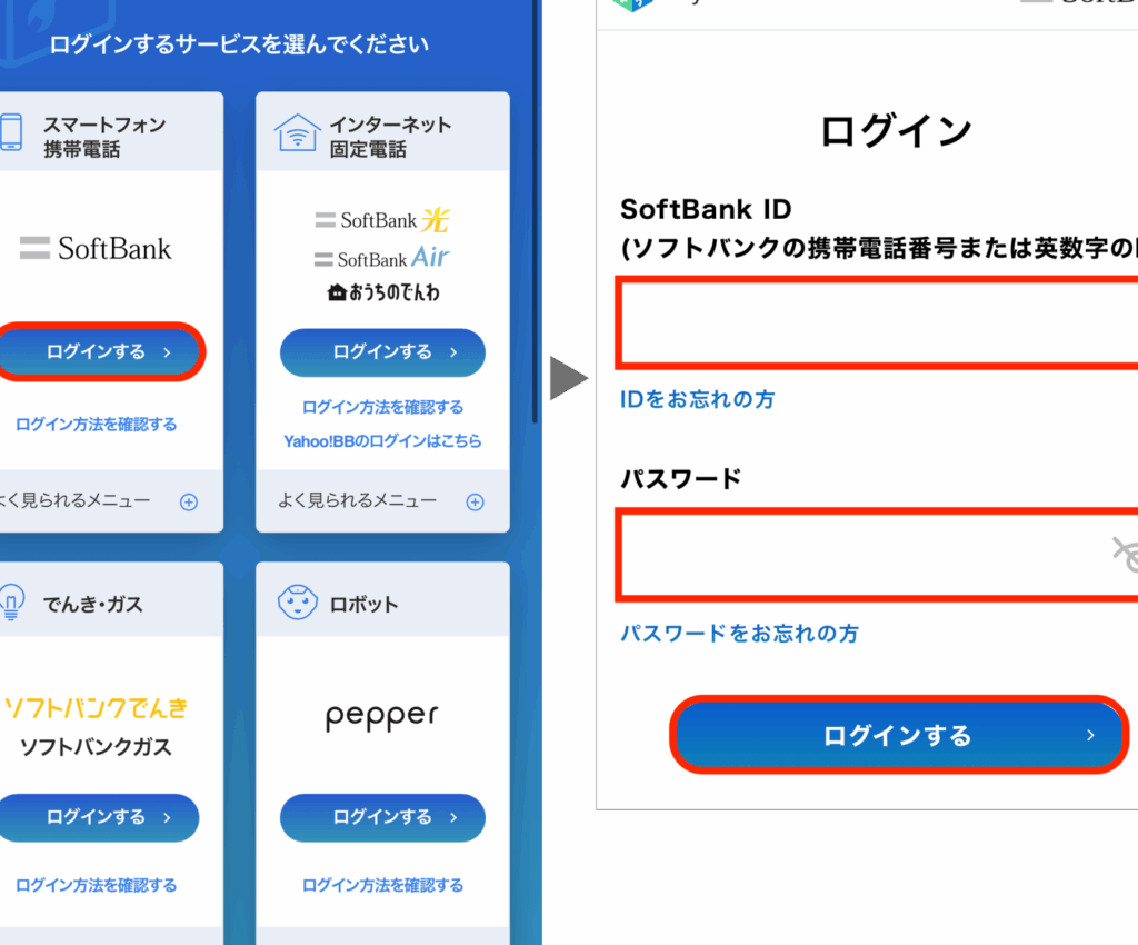 - 公式サイトにログイン: ソフトバンクの公式サイトにアクセスし、アカウントにログインします。