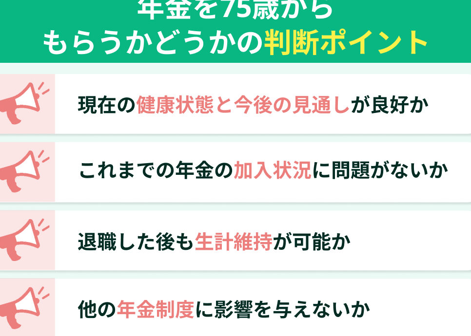 - 受給開始年齢の遅れ: 定められた受給開始年齢まで待たなければならず、それまでの生活設計に影響する場合もある。