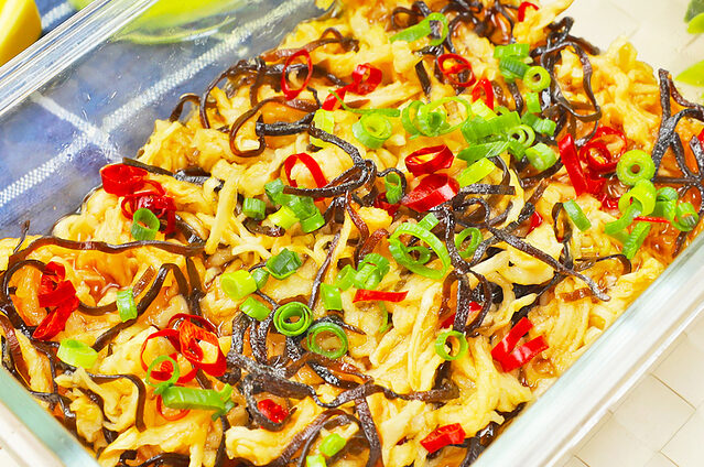 - 梅干しやのりを添えると、彩りが豊かになる。