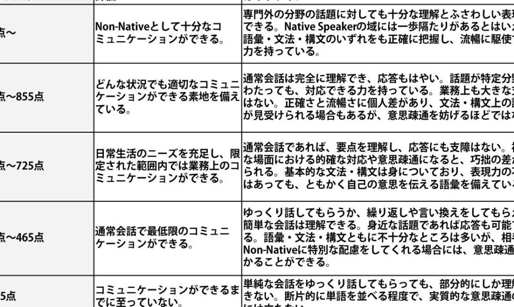 TOEICスコアは、英語能力を示す重要な指標です。スコアに応じて、どのように自分の立ち位置が変わるかを理解することが大切です。
