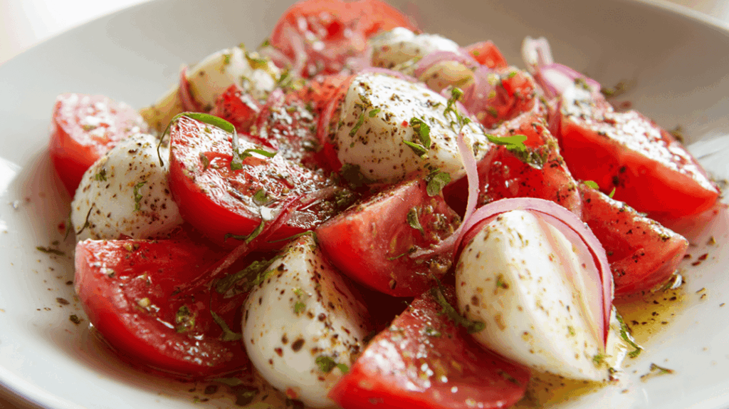 カプレーゼサラダは、モッツァレラチーズを楽しむための代表的な一品です。新鮮なトマトとバジルとの組み合わせが、シンプルながらも美しい彩りを生み出します。このサラダには通常、以下の要素が含まれます:
