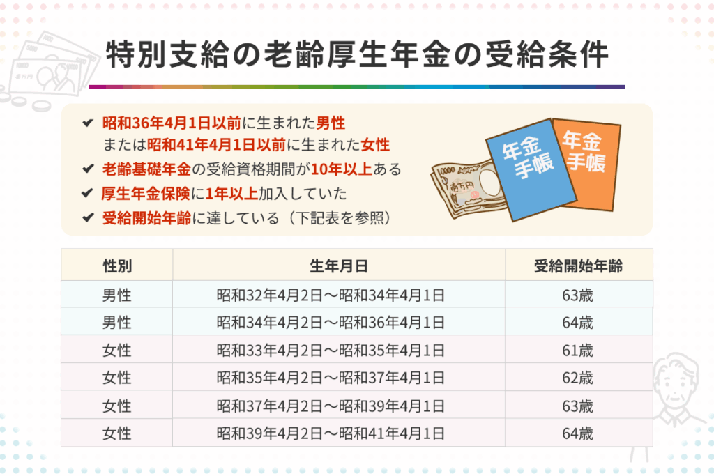 厚生年金を受け取るためには、以下の条件を満たす必要があります: