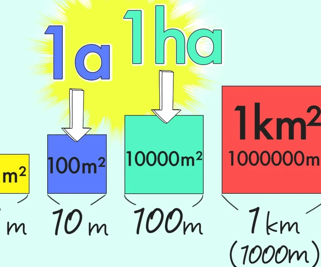 - 1ヘクタール = 10,000平方メートル