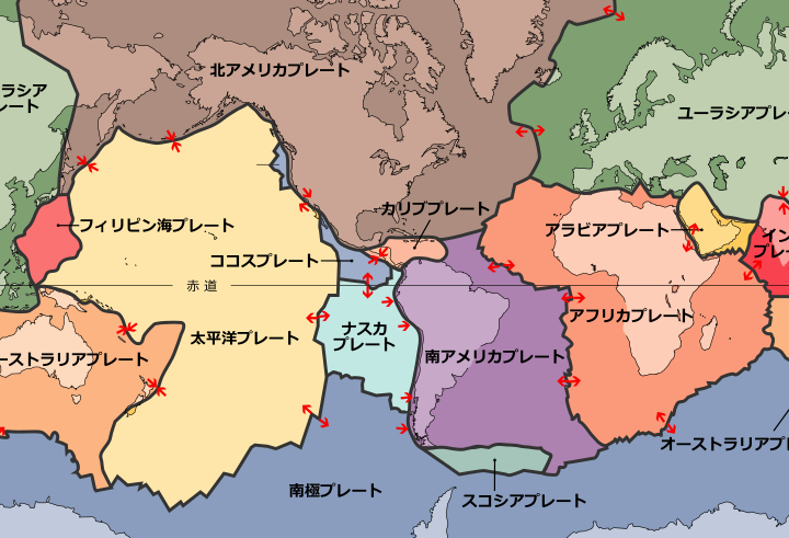 - プレートテクトニクス: 地殻は複数のプレートで構成され、それぞれが相互作用しながら移動する。