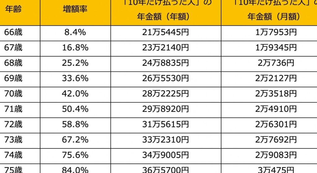 10年間の加入での給付額