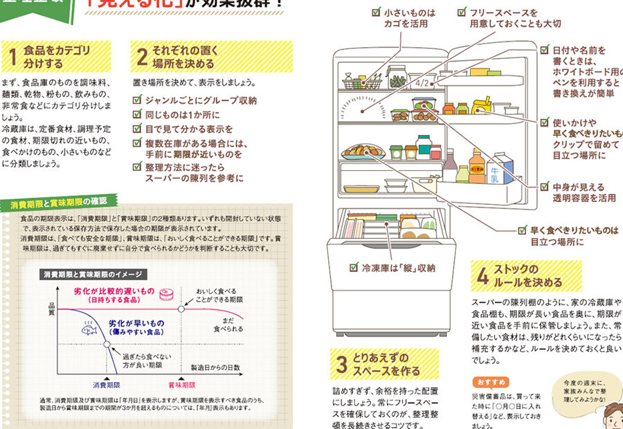 - 先入れ先出し: 先に開封したものから消費します。これによって古い食品が残ることなく、新鮮さを維持できます。