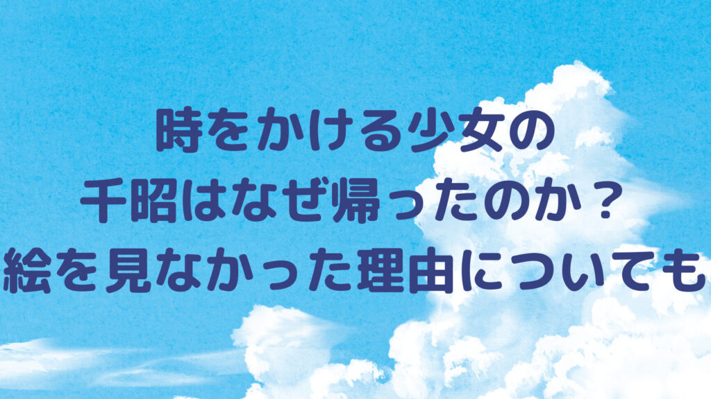 「時をかける少女」は、時間旅行と成長の物語です。この作品で重要なテーマは千昭がなぜ帰ったのかという問いです。彼の選択には複雑な背景があります。
