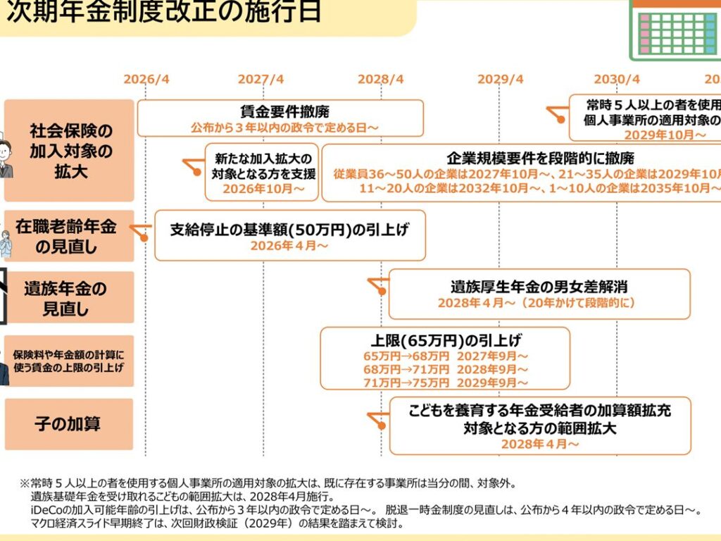 政府は持続可能な年金制度を目指して改革を進めている。例えば、2021年度から新しい政策として**「選択肢付き年金」**が導入された。この政策では、自営業者やフリーランス向けに柔軟な選択肢が提供される。主な内容は次の通り。