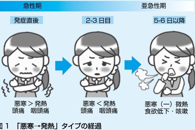 以下に、風邪の治癒段階を示します: