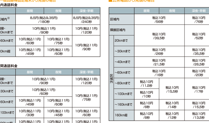 - NTT: 固定電話から携帯電話への通話は1分あたり約30円。ただし、特定のプランに加入すれば割引が適用される場合もあります。