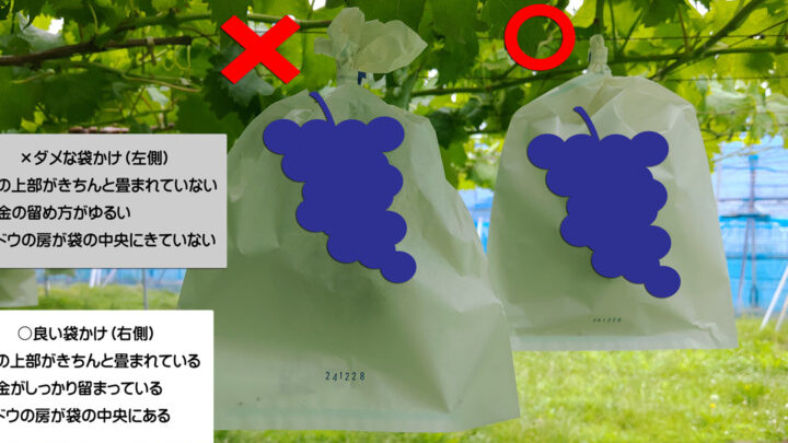 袋かけは、ぶどうを健康に育てるために重要な工程です。適切なタイミングと方法で行うことで、果実の品質や安全性が向上します。