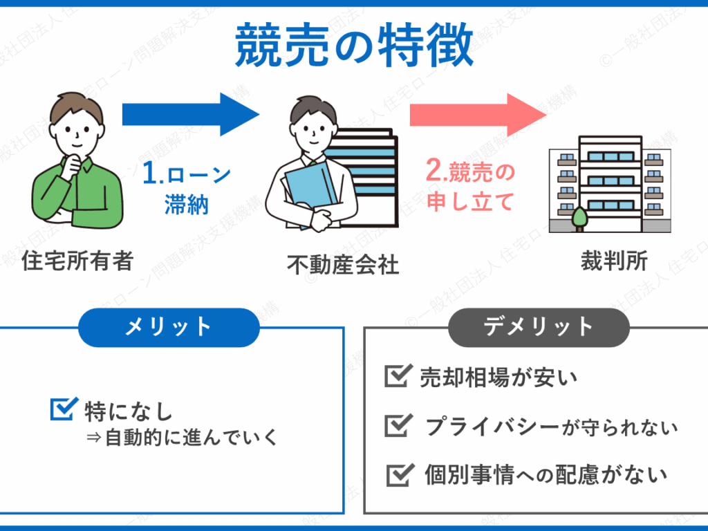 競売は、不動産を強制的に販売する手続きを指します。通常、このプロセスは債務者(元の所有者)がローンを返済しない場合に適用されます。借入金の返済遅延や支払い不能状態になると、金融機関は裁判所を通じて物件を競売にかけることになります。この際、元の所有者には通知されますが、その後も一定期間住む権利があります。