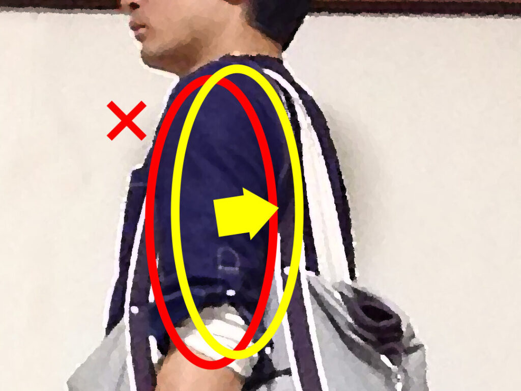 肩掛けバックの位置選び