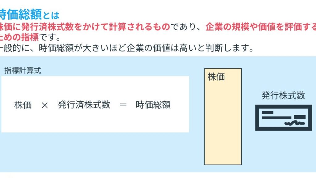 市場評価額は発行済み株式数に現在の株価を掛けたものです。この数値は、投資家や経営者に企業全体の財務状況や成長可能性を理解させます。具体的には、市場評価額が高いほど、企業への期待感や投資魅力が強まります。また、この指標は他社との比較にも役立ち、自社の立ち位置を把握する手助けとなります。