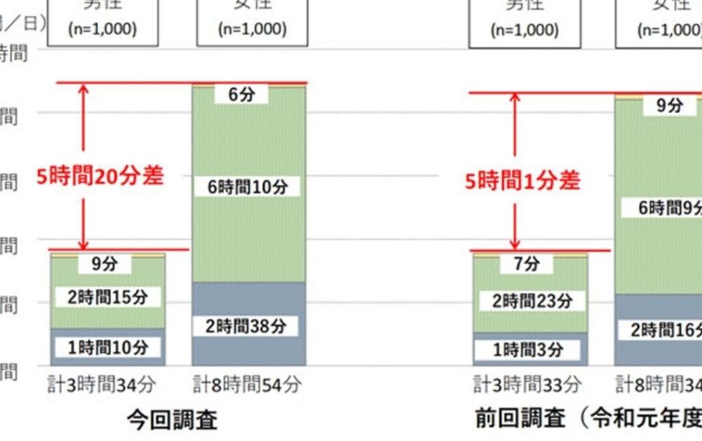 これらの要素から、女性が家事や育児にかける時間が増える傾向があります。