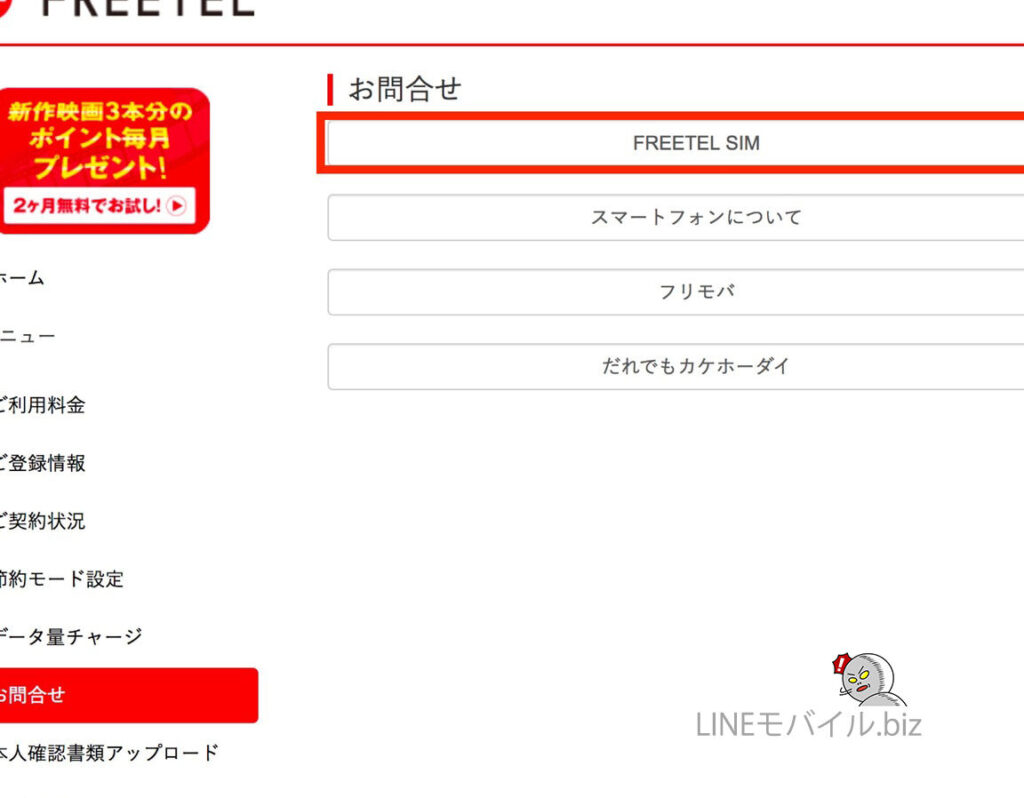 - サポートセンターに連絡: フリーテルの公式サイトに記載されているサポートセンターの連絡先を利用します。