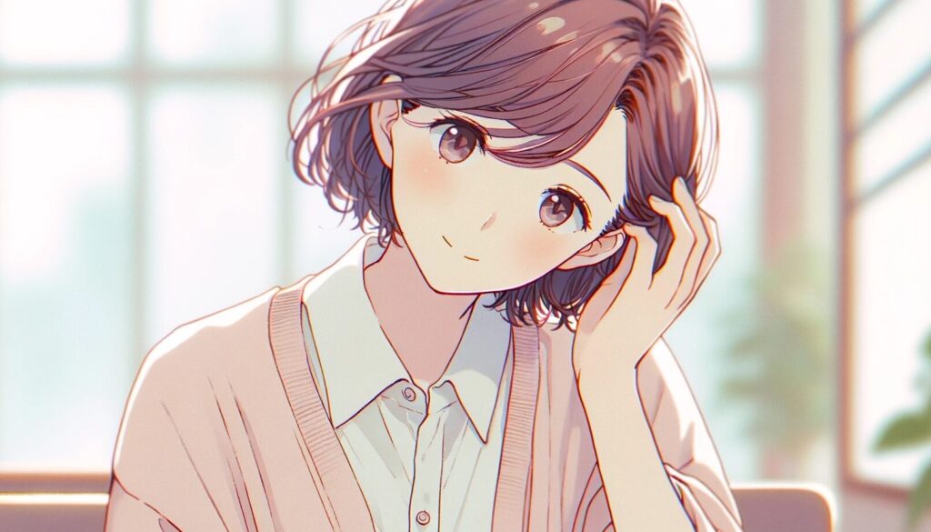 - ストレートヘア: 髪をサラサラに保つことで、すっきりとした印象を与えます。アイロンを使って髪をまっすぐにし、その後耳にかけると良いです。