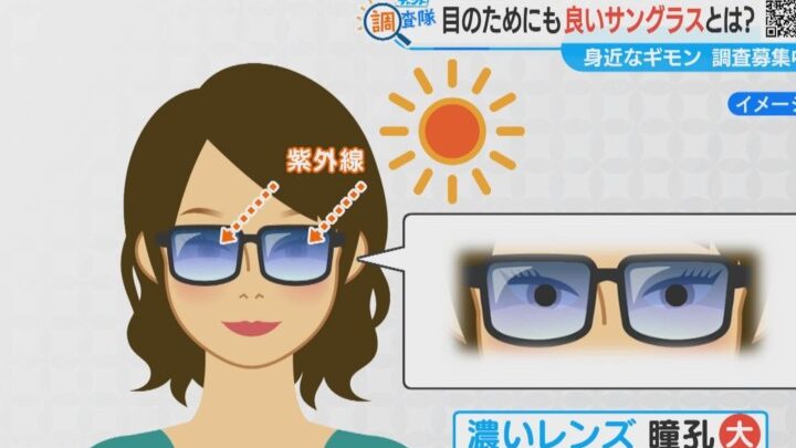 これらの影響を避けるため、高いUVカット率を持つサングラスが理想的です。